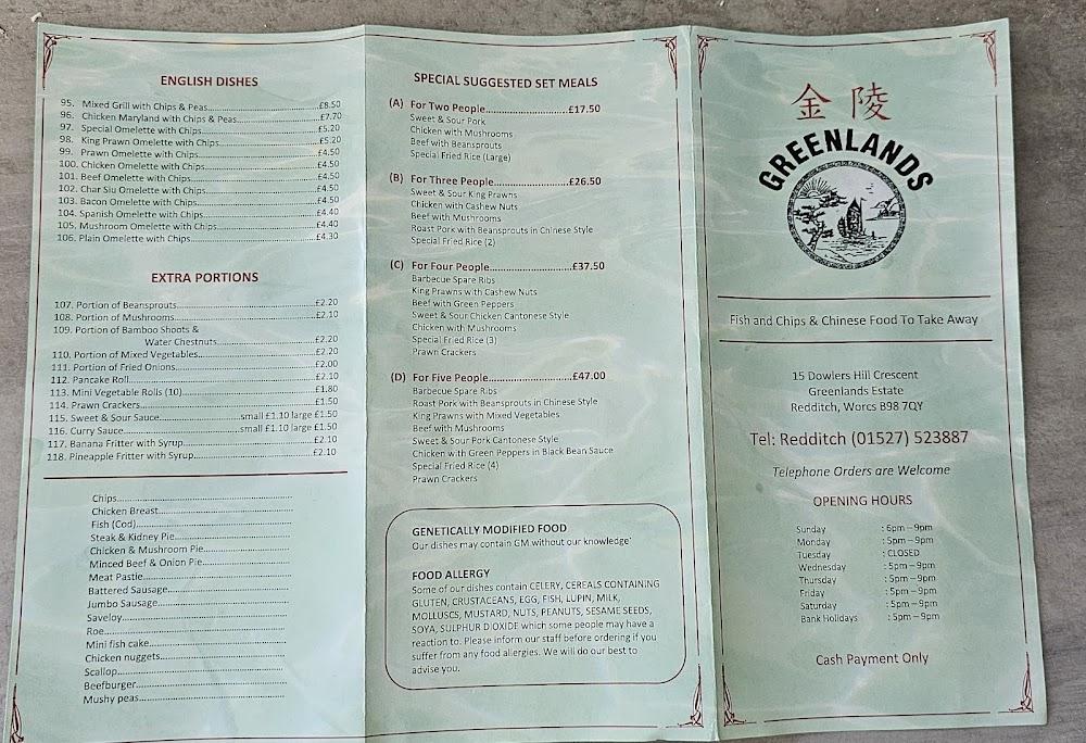 Greenlands Chinese Take Away is nestled in the heart of the Greenlands neighborhood in Redditch. This casual Chinese takeaway is renowned for its warm atmosphere and friendly service. The location is easily accessible, with a wheelchair-friendly car park and seating to accommodate everyone. Parking is convenient, with free street and lot options available. Although takeout is their main service, there's also an option for dine-in for those who prefer enjoying their meal at the restaurant. Regular customers often remark about the owner’s welcoming smile and personal touch, which adds to the restaurant's charm. Greenlands attracts a diverse crowd, from families to individuals looking for a quick, quality meal that doesn’t break the bank. Everything is cooked to order, so expect hot, fresh meals ready to devour. Whether you're a Redditch local or passing through, stopping by Greenlands will make your culinary journey rewarding.